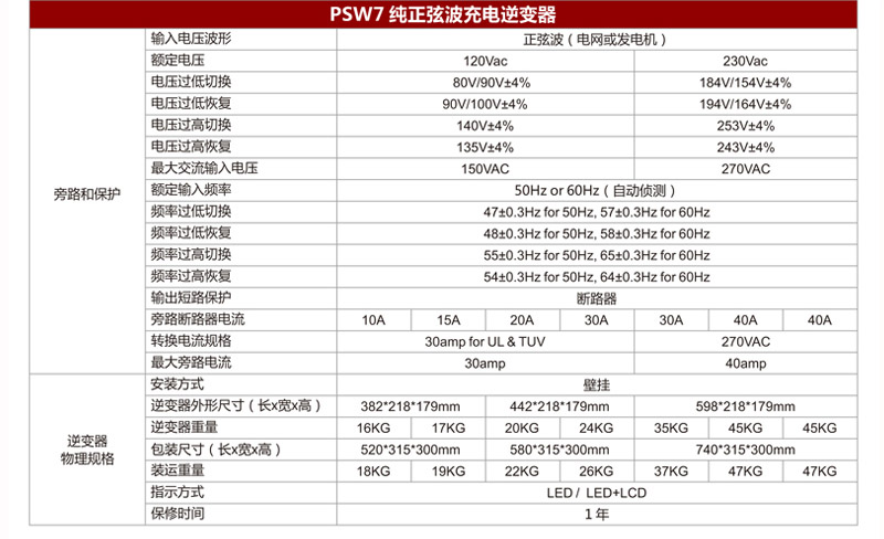PSW7工頻純正弦波充電逆變器